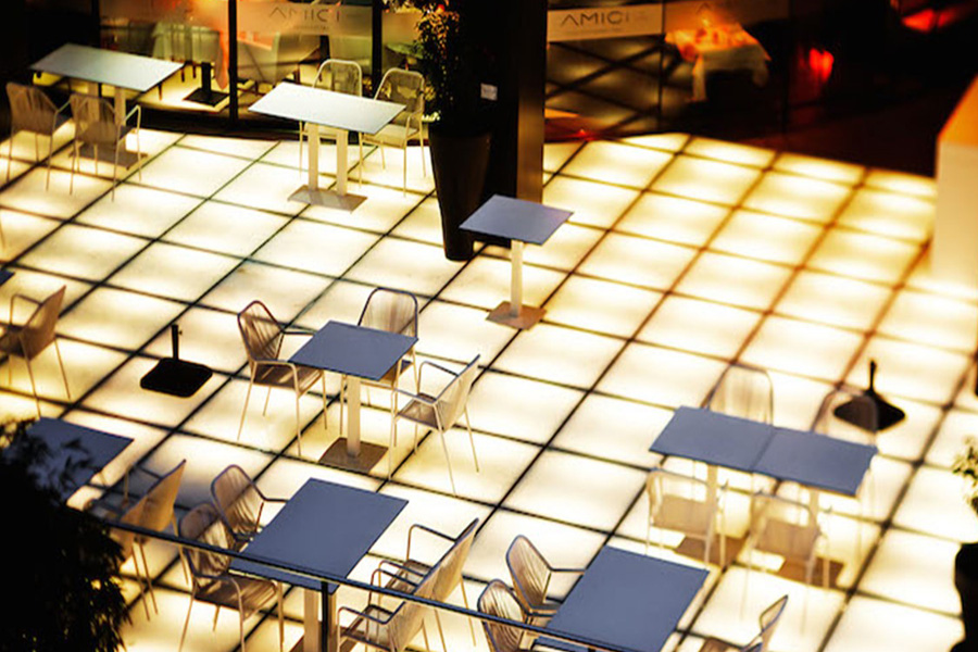 Begehbares Glas verleiht dem Raum Leichtigkeit, Transparenz und einen tiefen Raumeindruck.
